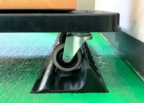 従来の区画線では防げなかった、製品や台車の越境を物理的なストッパーで防ぎます。